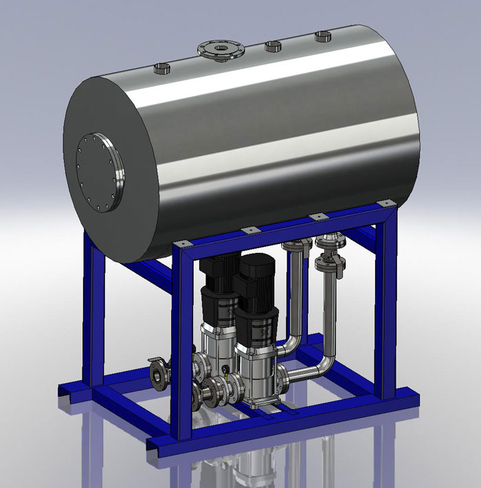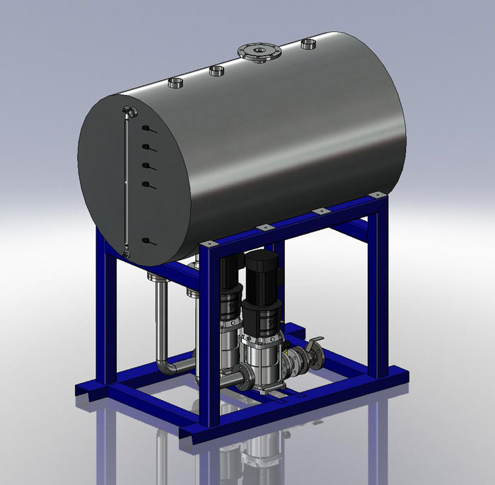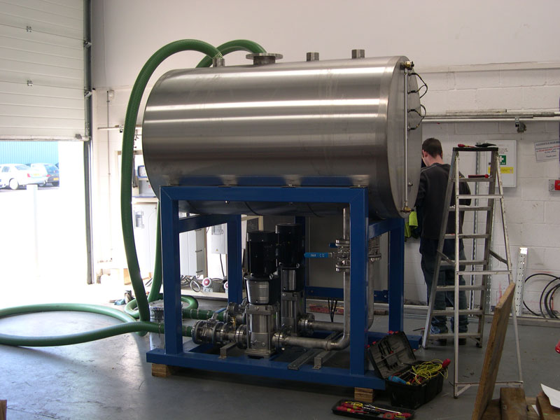 In addition we also design and build a package with inverter driven pumps, this will be controlled by level probes on the tank which in turn will increase the percentage of the pump running speed as the tank level rises and decreases as the level falls, this method will increase efficiency and will show savings on overall energy consumption costs.